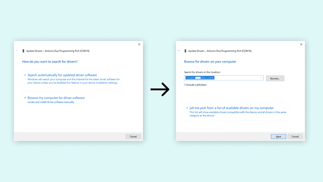 If you cannot see your Arduino Due in the port list, you may need to manually update the driver. Don't worry, this is a quick process!